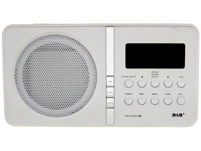 Tiny Audio M8 Digital radio med DAB/DAB+/FM. Tiny Audio M8 er en liten og kompakt radio for deg som kun hører på radio, og vil ha et rimelig og praktisk alternativ. Pris februar 2014: NOK 399,-